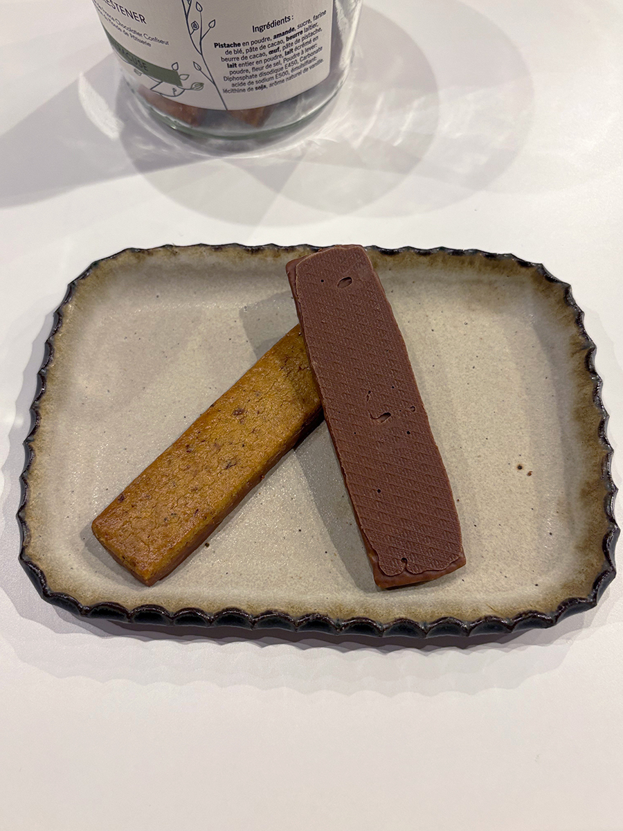 こちらはピスタチオが練り込まれたサブレにミルクチョコレートがかかったもの。