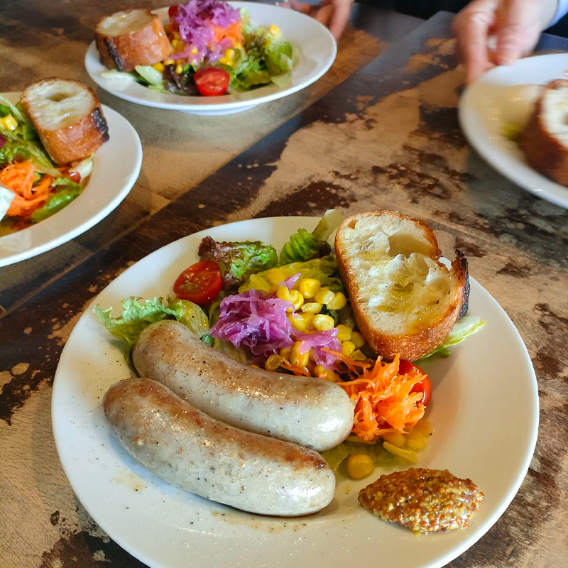 オードブルの自家製ソーセージとメインの国産牛のビーフハンバーグが食べてみたかったんです。