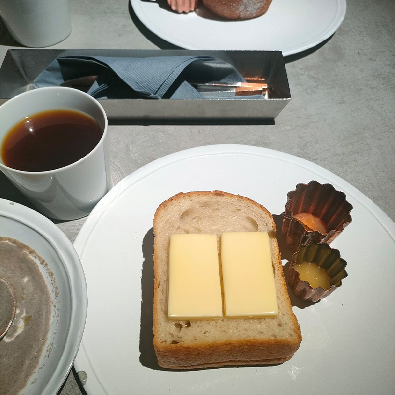 季節のスープ、厚切りトーストに蜂蜜とコンフィチュール、シンプルだけどとっても贅沢。