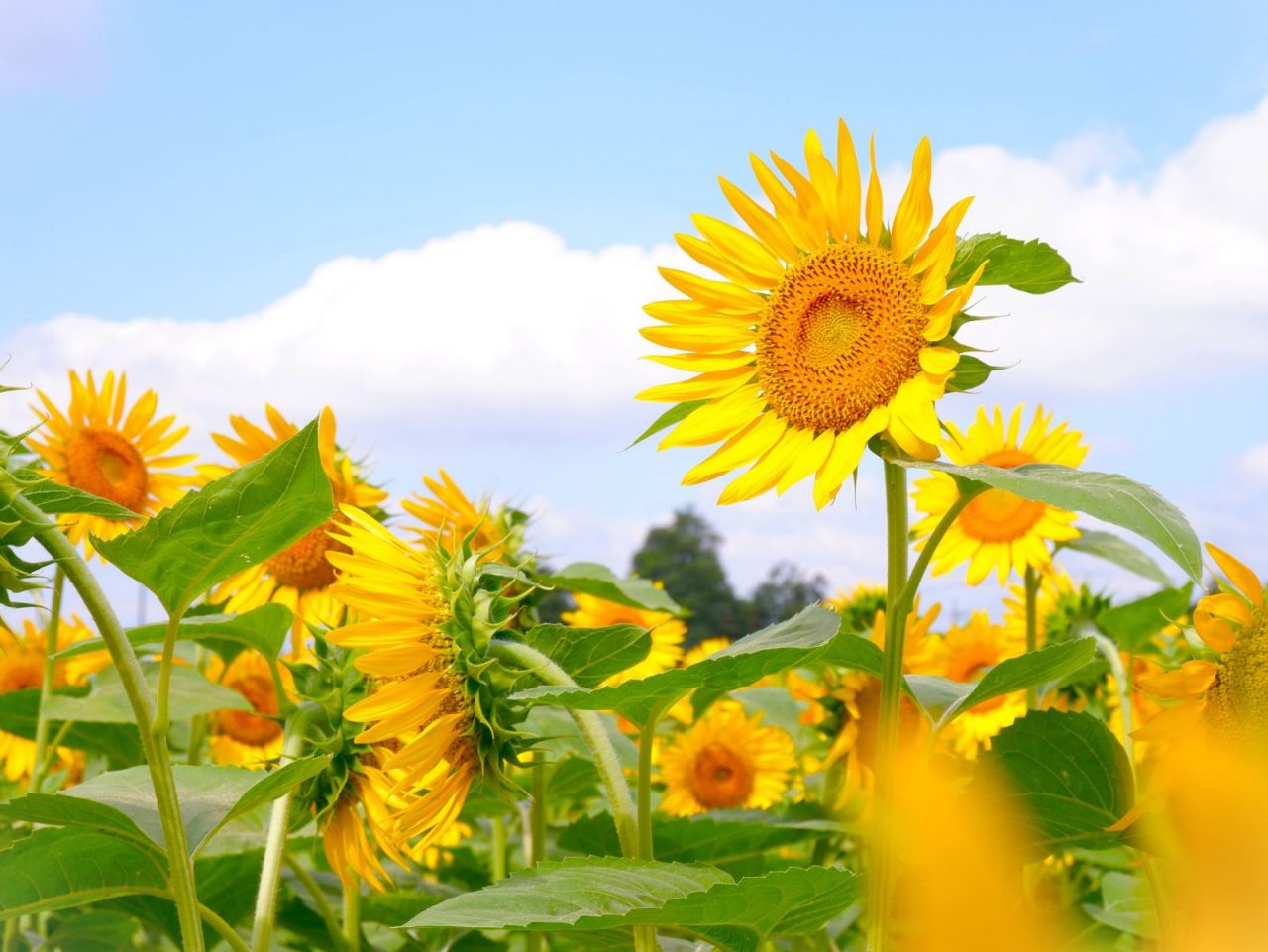 空を仰ぐひまわりの姿に、力強い生命力を感じました。