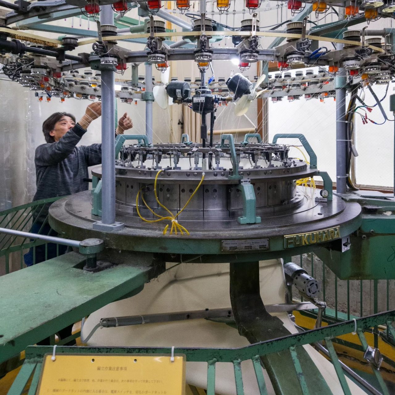 ヴィンテージのパーツを改造したオリジナルの特殊な編み機を使用。世界に一台しかない編み機だそうです。