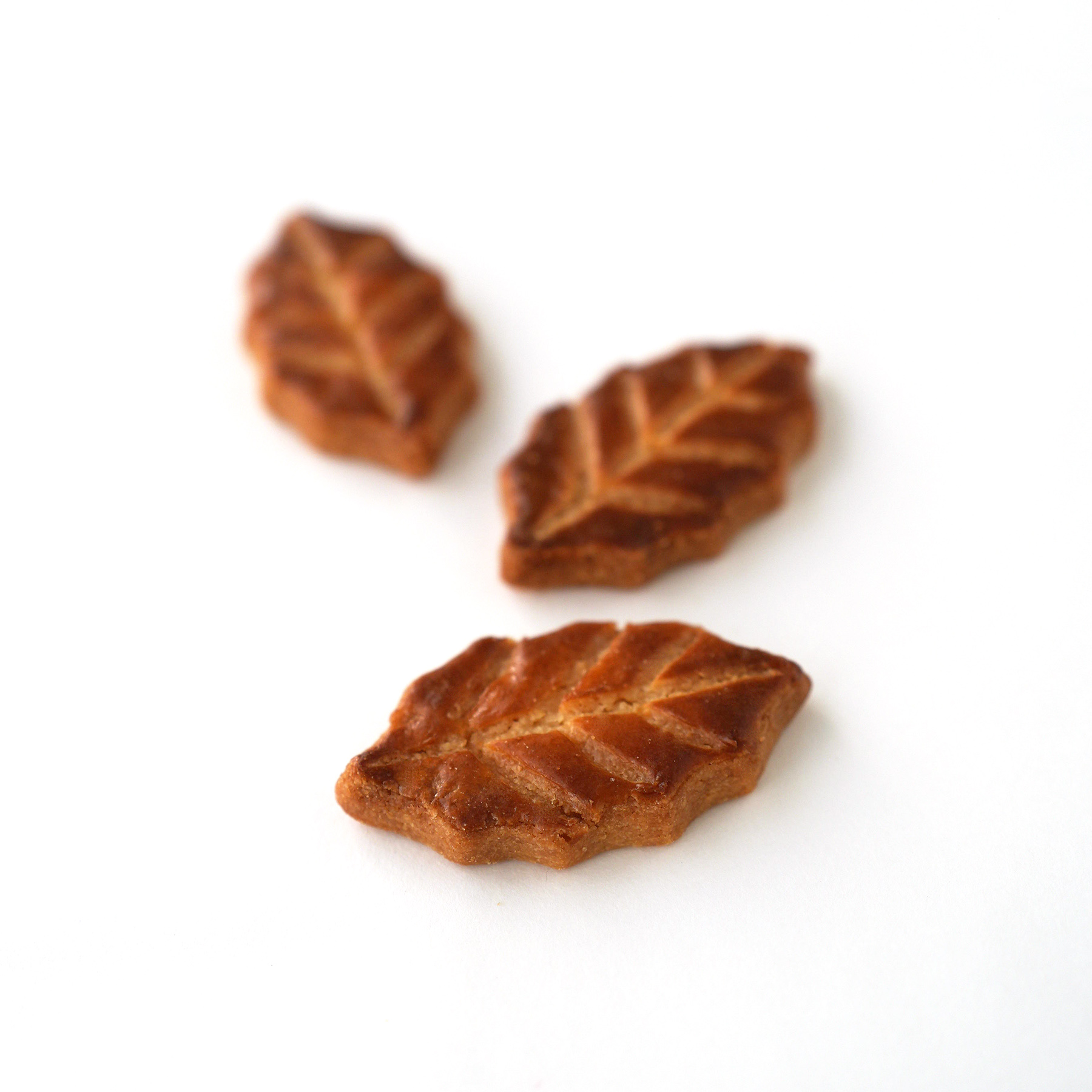 昨年も入れてお気に入りだった柊型の”ガレットナンテ”は、ラム酒を効かせた配合にアップグレード。ブルターニュ産のゲランドの塩気も加わって濃厚に仕上げたので、今年は小さめに作りました。食べやすいひとくちサイズですが、卵黄を塗ってひとつひとつ丁寧に模様を入れて作っています。