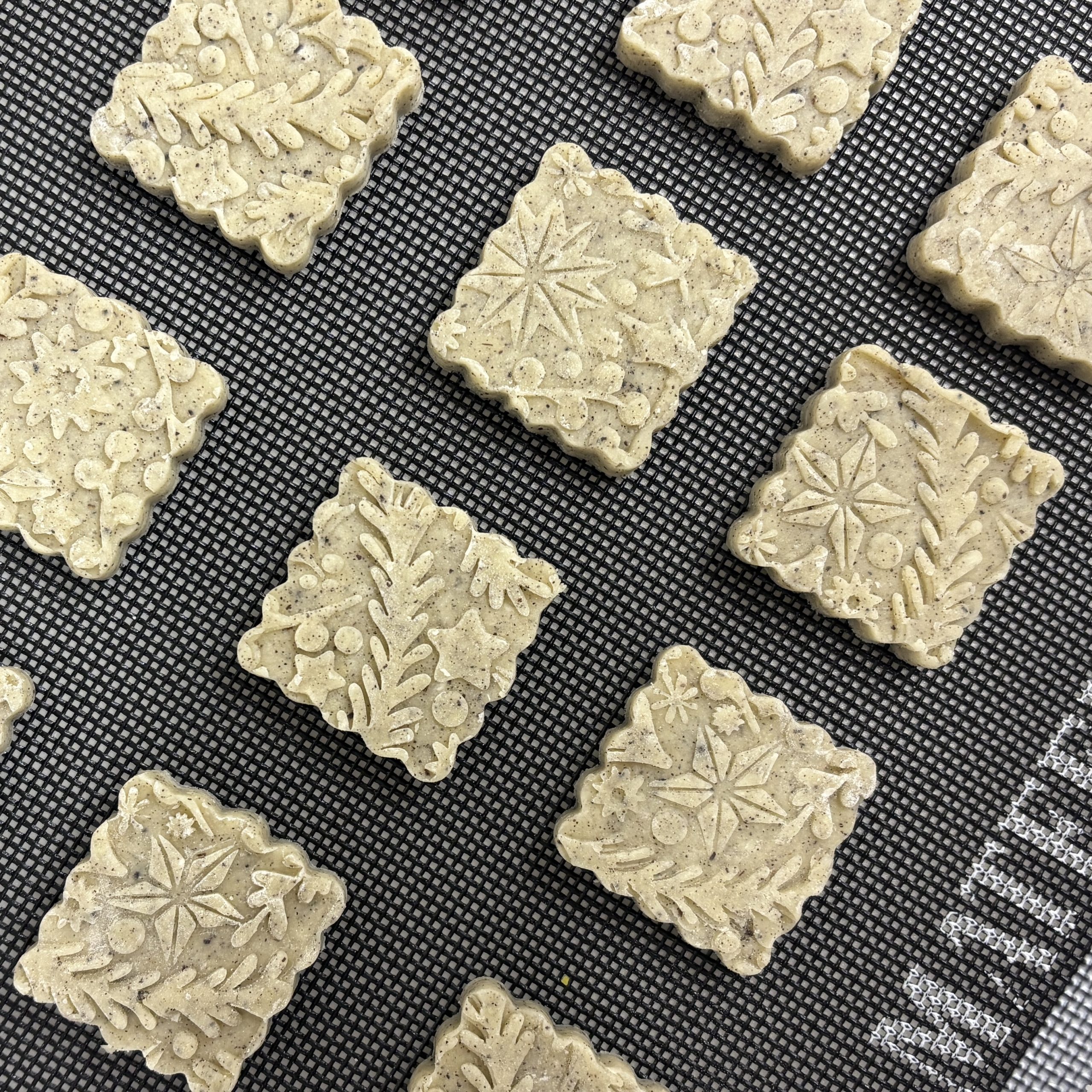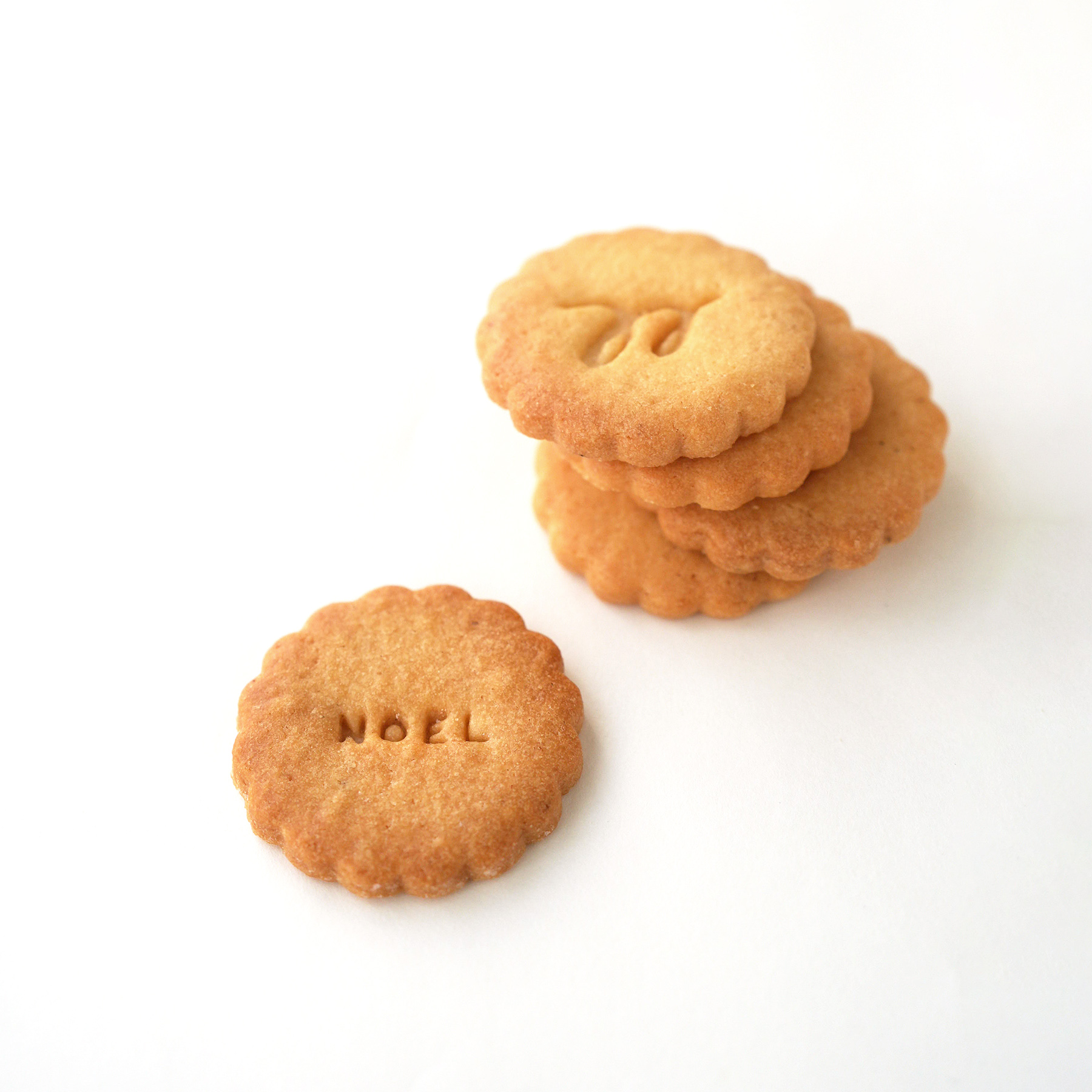 そしてせっかくの”ノエル缶”ですから、味だけでなく目も楽しめるものをと今回もうんうんと頭をひねって考えました。ツリーや星などありきたりのモチーフじゃないものを入れたくて、色々考えていた時にふと雰囲気のある型押しとかいいなぁと思って探して見つけたのがこちらのノエル柄のクッキー型。イギリスのショートブレッドに押したら絶対に素敵になると思い、焼いてみたらもうイメージ通りでした。