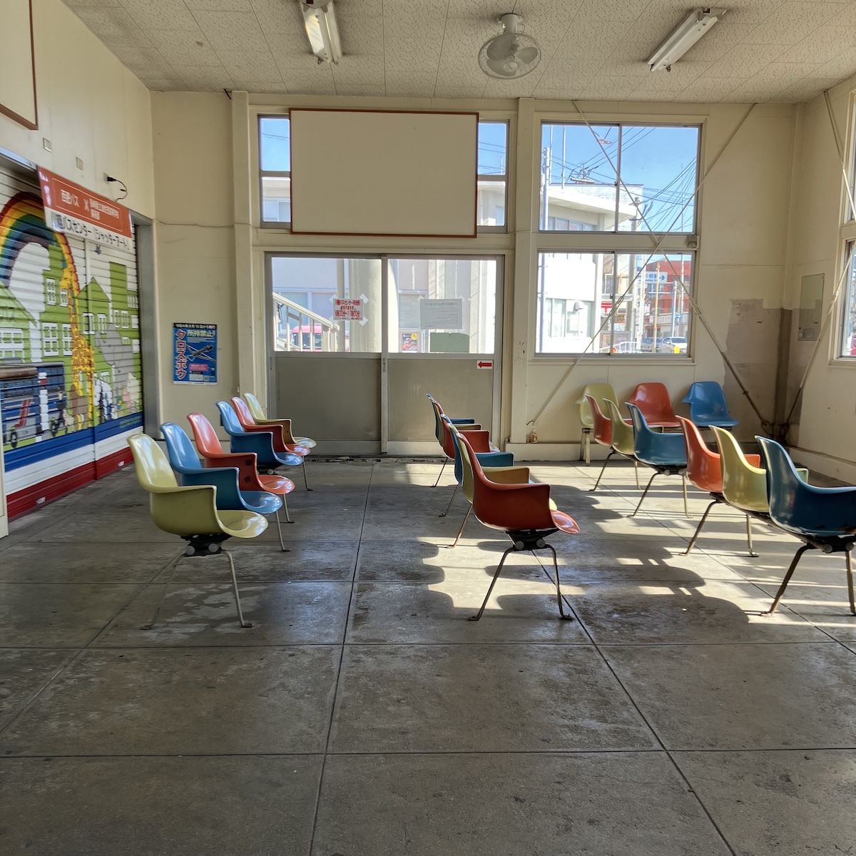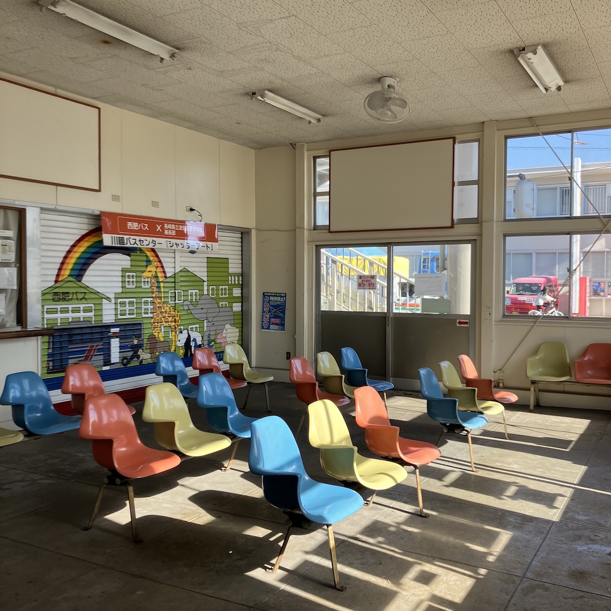 「あんでるせん」前のバス待合所。佇まいがとても雰囲気がありました。