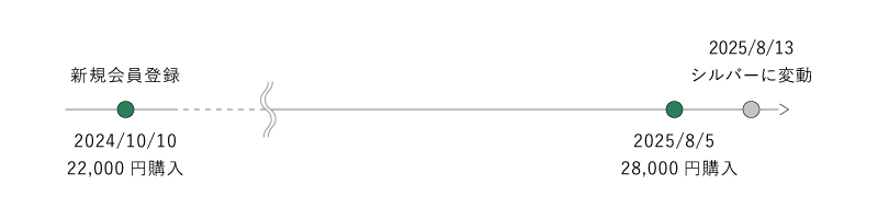 ・2025年8月5日に28,000円購入(この時点で過去1年間の購入金額が50,000円に到達)。