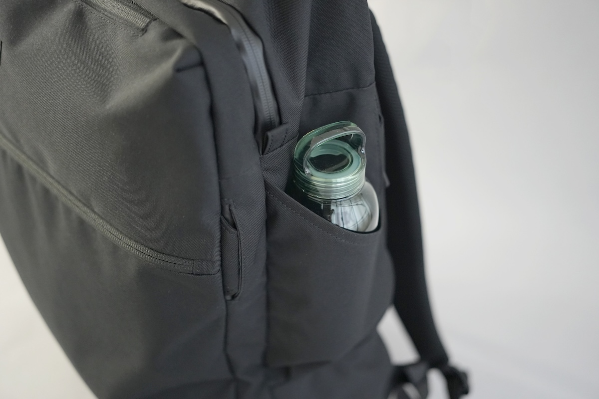 サイドの片側には、500mlのボトルが入るポケットも付いています。